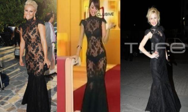 Ξεκινάμε, λοιπόν, με την Μπέτυ Μαγγίρα, που έβαλε το συγκεκριμένο φόρεμα στις 3 Οκτωβρίου 2010, όταν και έκανε πρεμιέρα για δεύτερη σεζόν με την εκπομπή ''Exclusive'' στον Alpha. Φορώντας ένα μακρύ, μαύρο δαντελένιο φόρεμα, η παρουσιάστρια εντυπωσίασε το κοινό της και να που το ξανασυναντήσαμε...