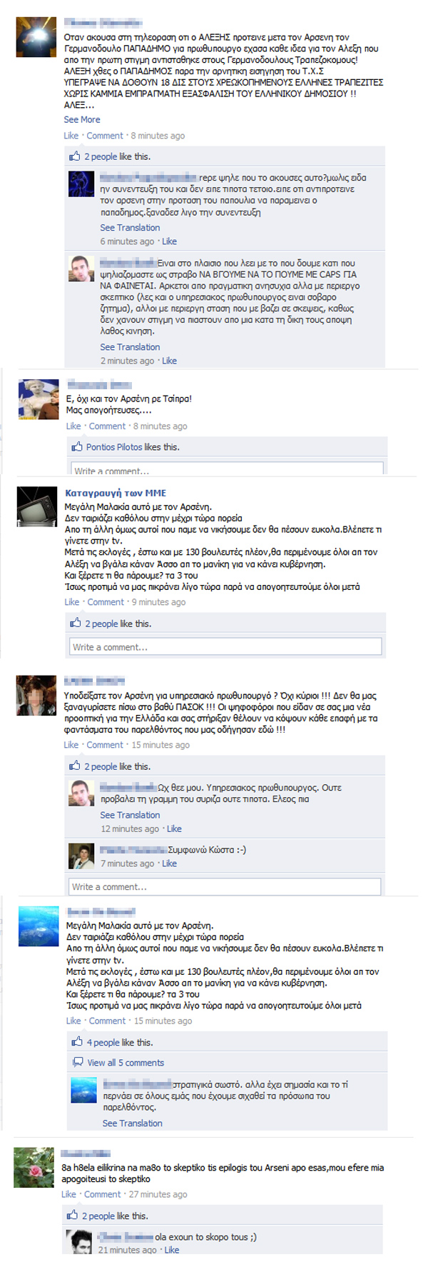 Τα επικριτικά σχόλια των φίλων του στο facebook δέχεται εδώ και κάποιες ώρες ο Αλέξης Τσίπρας, μόλις έγινε γνωστή η πρόταση του για πρωθυπουργία Γεράσιμου Αρσένη.