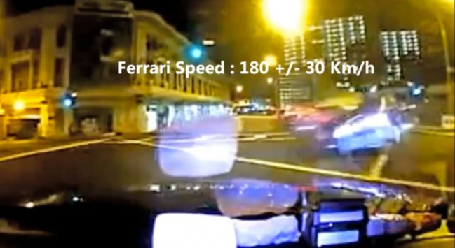 Είναι ίσως το πιο τρομακτικό τροχαίο που έχει ποτέ καταγράψει κάμερα. Μια Ferrari παραβιάζει το κόκκινο φανάρι σε κεντρικό δρόμο της Σιγκαπούρης και πέφτει με απίστευτη ταχύτητα πάνω σε ένα ταξί που μόλις έχει ξεκινήσει να διασχίσει τη διασταύρωση.