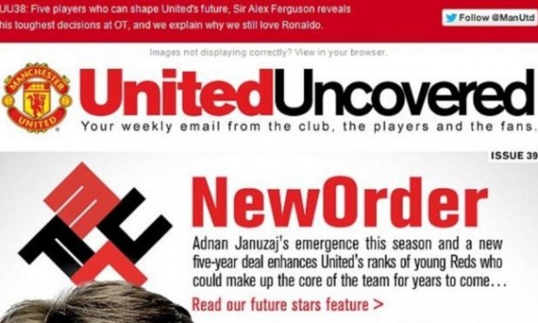 Οι φίλοι της Μάντσεστερ Γιουνάιτεντ έλαβαν το mail με το newsletter της ομάδας και... έμειναν με το στόμα ανοιχτό. Είδαν τον τίτλο: New order (Νέα τάξη) αλλά και το σηματάκι πάνω από τον Γιανουζάι το οποίο παραπέμπει στη σβάστικα.