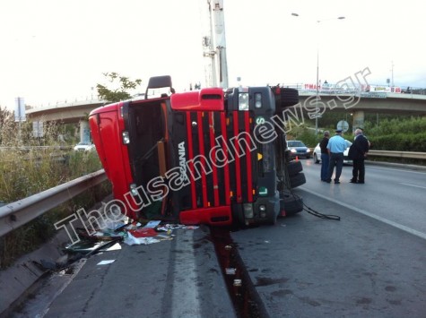 Το όχημα κατευθυνόταν ανατολικά της Θεσσαλονίκης και λίγο πριν από το τούνελ στη γέφυρα Τριανδρίας ντεραπάρισε.