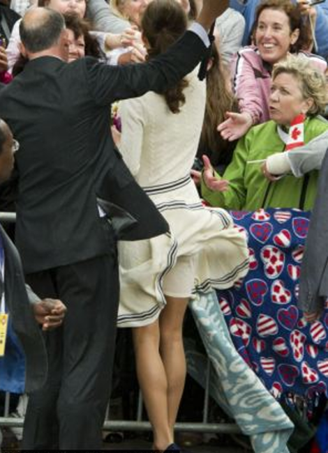 Ποιος θα ξεχάσει, επίσης, το βαθύ ντεκολτέ της δούκισσας όταν πήγε σε τζαμί της Μαλαισίας. Ή το αλά Μέριλιν Μονρό ατύχημα που είχε στην πρώτη της βασιλική περιοδεία στον Καναδά, που φάνηκαν ξανά τα οπίσθιά της, ή ένα ανάλογο ατύχημα όταν πήγε σε γάμο φιλικού ζευγαριού, όταν, μάλιστα, ήταν έγκυος. Και όλα αυτά, πάντα, ενώ ήξερε ότι πάει κάπου όπου έχει κάμερες. Αυτή η τάση να μας αποκαλύπτει το σώμα της, αρχίζει, μάλλον, να της γίνεται συνήθεια...