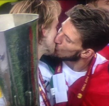 Η χαρά της κατάκτησης του Europa League ήταν τέτοια που οδήγησε τον Ιβάν Ράκιτιτς και τον Ντάνιελ Καρίσο στο να φιληθούν στο στόμα.