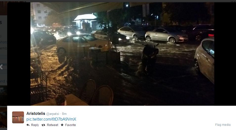 Οι κάτοικοι της συμπρωτεύουσας είδαν τον ουρανό να... ανοίγει και να ρίχνει έντονη βροχή συνοδευόμενη από κεραυνούς. Από τη σφοδρή κακοκαιρία που έπληξε το απόγευμα της Παρασκευής την πόλη πλημμύρισαν οι δρόμοι στο κέντρο της Θεσσαλονίκης.
