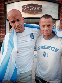 Ο γνωστός ηθοποιός φόρεσε μια φανέλα με το εθνόσημο, τύλιξε στους ώμους του την ελληνική σημαία και μαζί με έναν φίλο του πόζαρε έξω από ελληνικό μαγαζί.