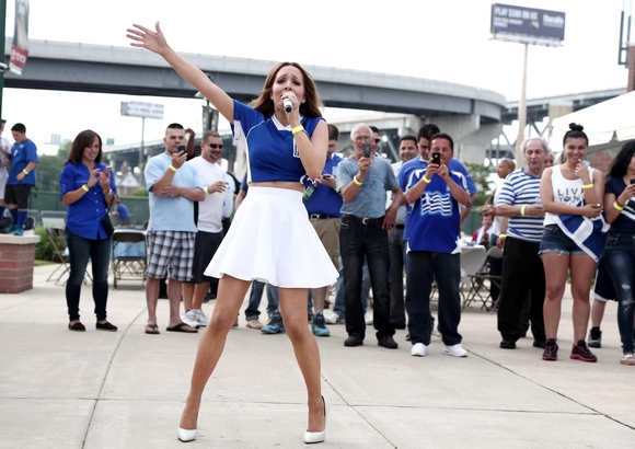 Η ομογενής τραγουδίστρια ντύθηκε στα γαλανόλευκα, πήρε το μικρόφωνο, στάθηκε μπροστά στις ενδεκάδες των δυο ομάδων και "εκτέλεσε" τον Εθνικό Ύμνο!