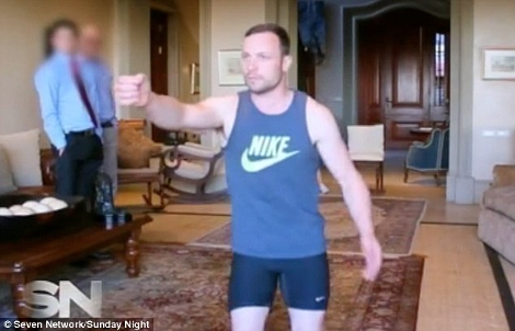 Στο βίντεο εμφανίζεται ο αθλητής, χωρίς τα πρόσθετα μέλη του, να περπατά και να υψώνει το δεξί του χέρι σαν να πυροβολεί και στη συνέχεια να σέρνει ένα γυναικείο σώμα όπως έκανε στο άψυχο κορμί της συντρόφου του εκείνη τη βραδιά.