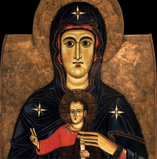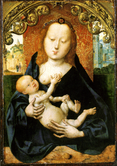 Στις πολυάριθμες αναπαραστάσεις της Παρθένου με τον Ιησού, μέσα από την ιστορία της Τέχνης, ο Ιησούς σπάνια απεικονίζεται σαν ένα όμορφο και αγγελικό βρέφος. Ειδικά στον Μεσαίωνα, το θείο βρέφος θυμίζει περισσότερο έναν μικρό ενήλικα, σοβαρό και άσχημο.