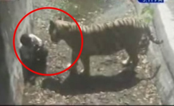 Ένας νεαρός από το Νέο Δελχί της Ινδίας βρέθηκε, άγνωστο μέχρι στιγμής για ποιό λόγο, μέσα σε κλουβί ζωολογικού κήπου, με μία λευκή τίγρη, και για 10 περίπου λεπτά ψυχοραγούσε στα σαγόνια του θηρίου, χωρίς να μπορεί κανένας να τον βοηθήσει.