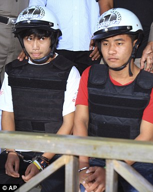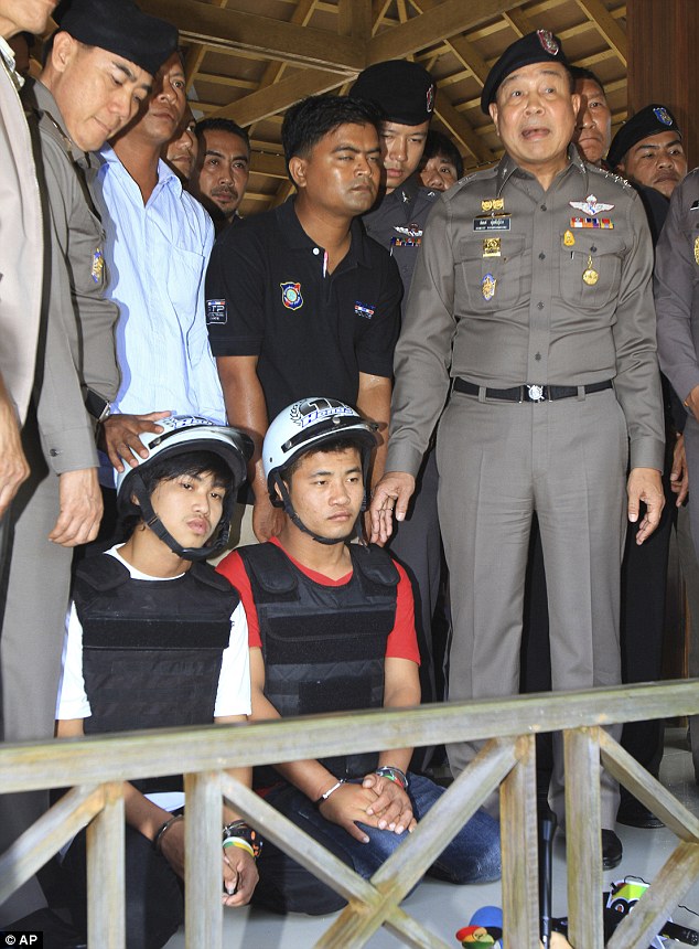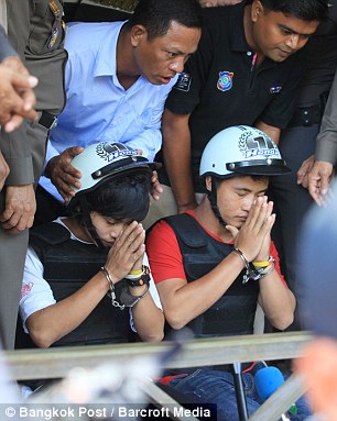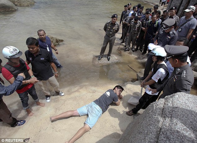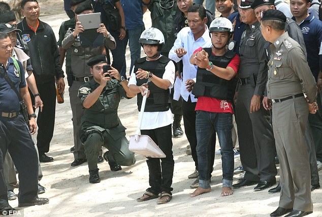 Δείχνοντας ελάχιστα συναισθήματα στα πρόσωπά τους, στάθηκαν στην παραλία Koh Tao όπου βρήκαν το θάνατο η 23χρονη Χάνα Γουίθεριτζ και ο 24χρονος Ντέιβιντ Μίλερ, στις 15 Σεπτεμβρίου. Εκεί επέδειξαν τον τρόπο με τον οποίο τους σκότωσαν και αναφέρθηκαν σε όλες τις λεπτομέρειες εκείνης της μοιραίας νύχτας.